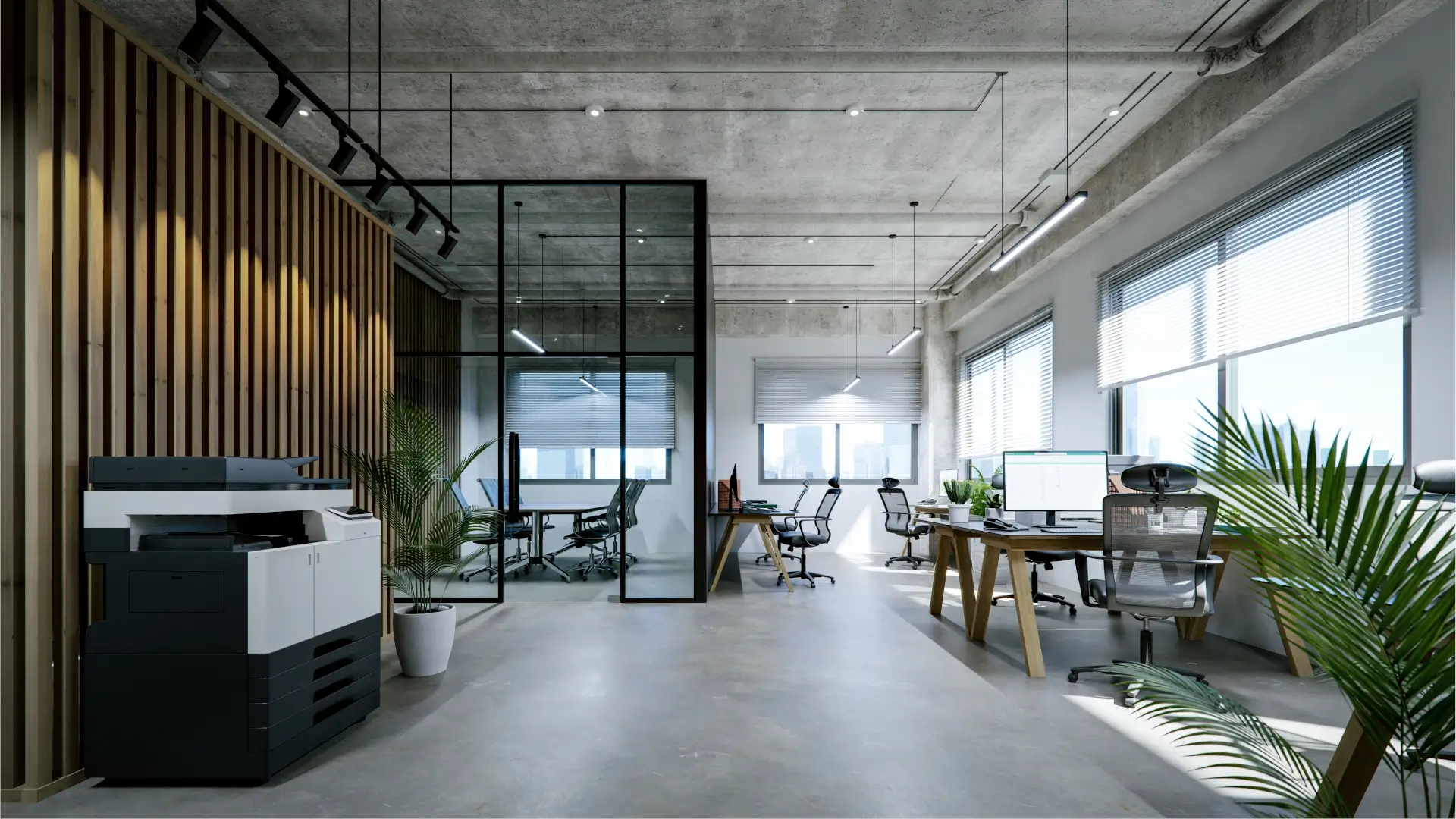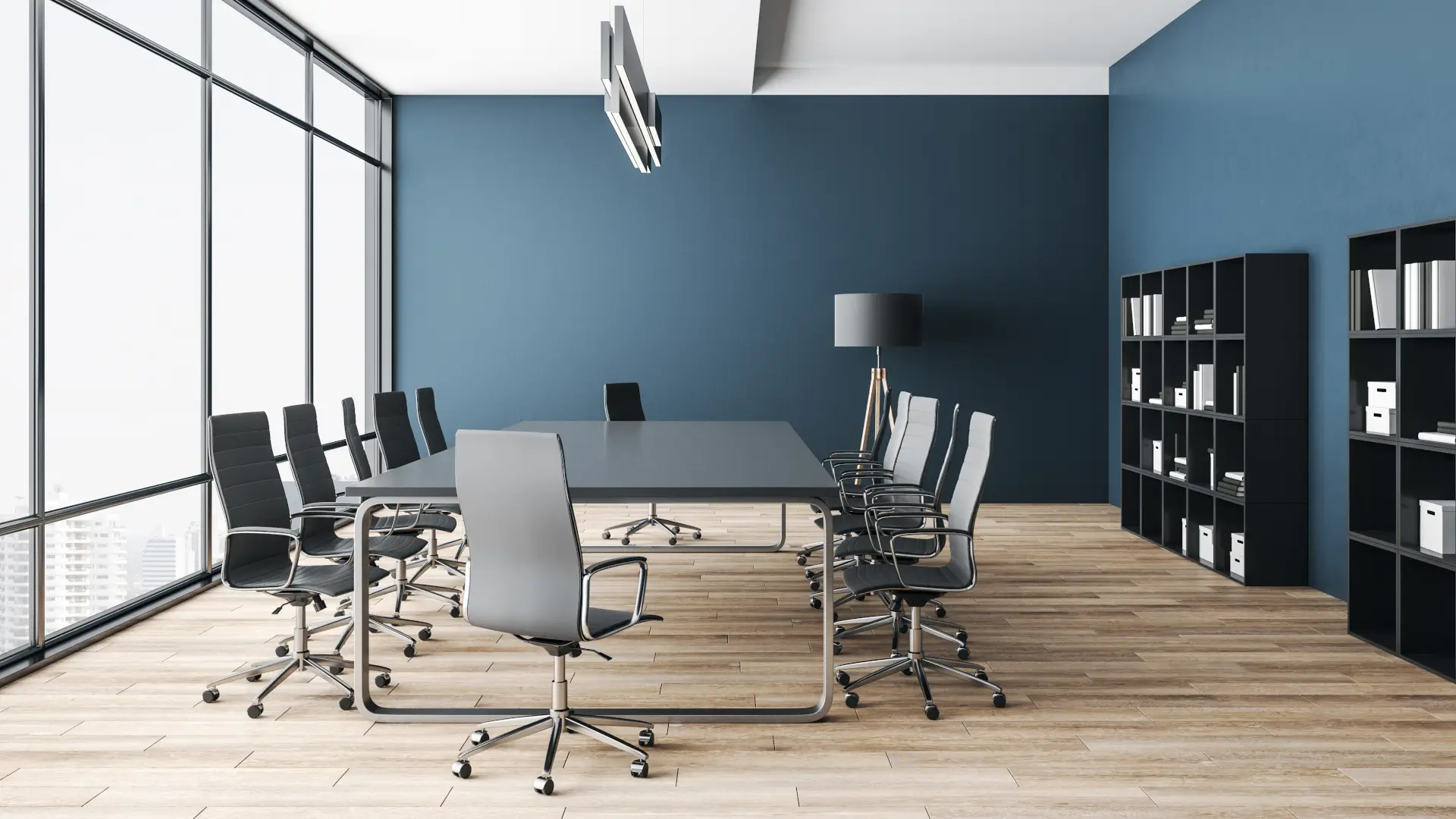 Adaptable layouts for meeting rooms, hot-desks, and collaboration areas.